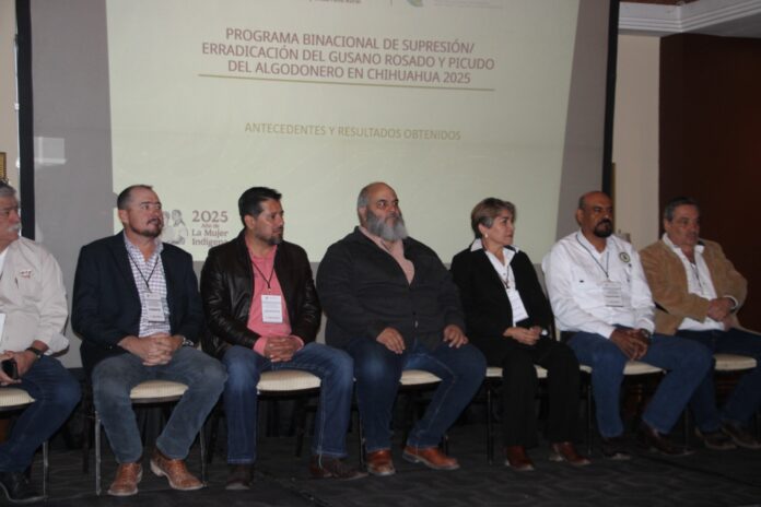 Chihuahua, Chih. (ADN/Staff) – Con la participación de autoridades federales, estatales y productores agrícolas de ambos lados de la frontera, el estado de Chihuahua fue sede de la Reunión Anual de Trabajo del Programa Binacional de Erradicación del Gusano Rosado y del Picudo Algodonero, un esfuerzo conjunto entre México y Estados Unidos para preservar la sanidad del cultivo de algodón, considerado un pilar económico para diversas regiones fronterizas.