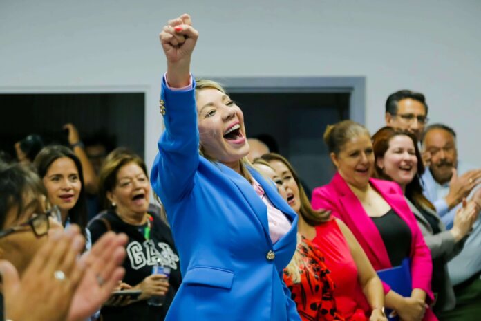 Con la presencia de la gobernadora María Eugenia Campos Galván, el alcalde Marco Antonio Bonilla Mendoza, el presidente estatal saliente del PAN, Gabriel Díaz Negrete y el coordinador de los diputados en el Congreso, Alfredo Chávez Madrid, así como con la votación de los consejeros, dieron el triunfo a Daniela Álvarez.