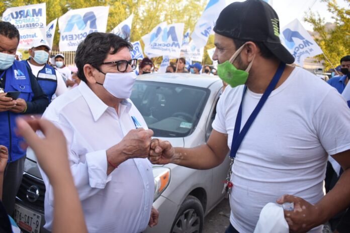 Ciudad Juárez, Chih.- Javier González Mocken, fue recibido por los colonos con porras, aplausos y gente que demostraba su aceptación a su proyecto, mientras realizaba acciones de proselitismo.