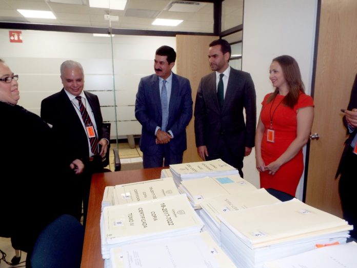 Junto con la solicitud de detención, se realizó una primera entrega de varias cajas con 70 tomos y 50 discos compactos, con las carpetas de investigación y las pruebas en las que se basaron los distintos jueces penales de control en el Estado de Chihuahua para dictar las órdenes de aprehensión.