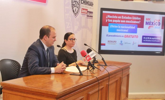 Chihuahua, Chih .- Este jueves en rueda de prensa, el director general del Registro Civil, Rafael Alejandro Corral Valverde, presentó la segunda edición del Programa “Soy México” que otorga la nacionalidad mexicana a menores, jóvenes y personas adultas estadounidenses que son hijas e hijos de padres y madres mexicanos.