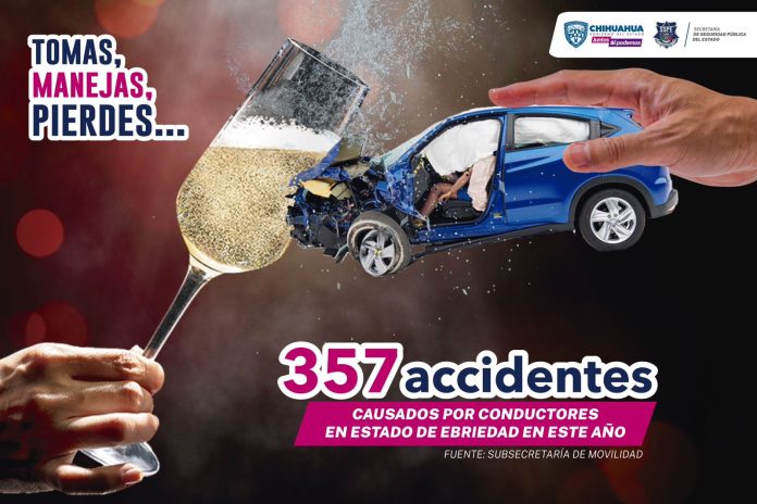 Chihuahua, Chih .- La Secretaría de Seguridad Pública del Estado (SSPE), a través de la Subsecretaría de Movilidad, hace un llamado a la población para que evite conducir luego de consumir bebidas alcohólicas, ya que es una de las principales causas de los accidentes viales.