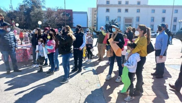 Chihuahua, Chih . (ADN / Arturo Hernández) – Un grupo de padres de familia, acompañados de sus hijos, llevaron a efecto una manifestación para exigir el regreso a clases presenciales, al considerar que el encierro, a consecuencia de las clases virtuales, ha provocado daños emocionales en los menores.