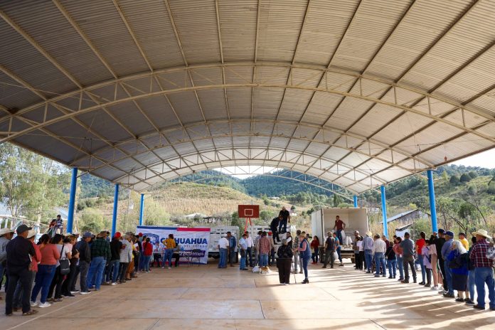 Chihuahua, Chih .- El Gobierno del Estado en conjunto con los ayuntamientos de Chinípas y Guazapares, entregó 64 toneladas de paquetes de maíz y frijol a 700 familias, para el fortalecimiento alimentario de quienes han sido severamente afectados por la sequía.