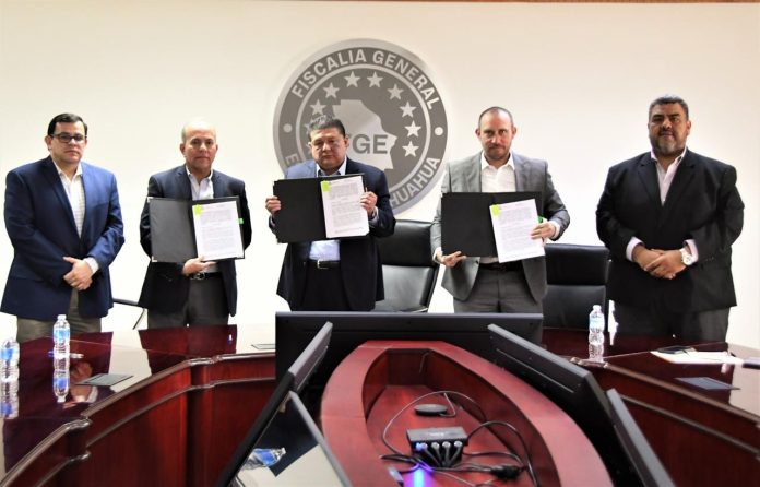 Chihuahua, Chih .- La firma de este convenio permitirá establecer los mecanismos para el intercambio de capacitación, fortalecer capacidades institucionales y desempeñar de manera eficiente las actividades en sus respectivas competencias, específicamente, en la identificación de actos posiblemente constitutivos de delitos y la presentación de denuncias ante la autoridad competente.
