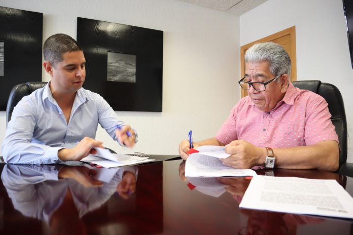 Con el objetivo de ayudar a comerciantes y familias afectadas de la Unión de Vendedores “Benito Juárez”, el Gobierno del Estado, a través de la Secretaría de Desarrollo Humano y Bien Común (SDHyBC), y el Municipio de Villa Ahumada, realizaron la firma de un convenio de colaboración de un proyecto de empleo temporal para la reconstrucción de los locales dañados luego de que el pasado 7 de septiembre un tractocamión impactara con las instalaciones del punto de venta de burritos en la avenida principal.