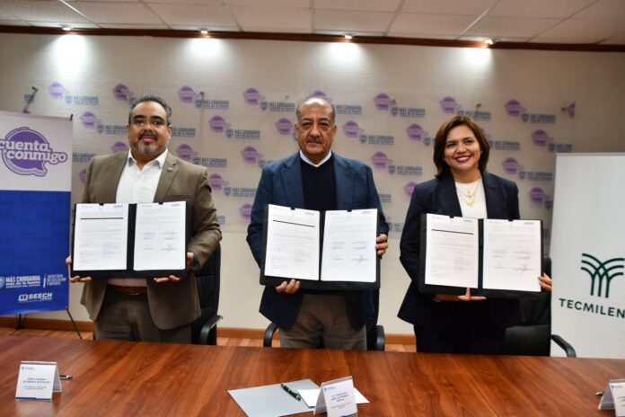 Chihuahua, Chih. (ADN/Staff) – Los Servicios Educativos del Estado de Chihuahua (SEECH) y la institución Tecmilenio firmaron un convenio de colaboración orientado a impulsar la profesionalización del talento educativo, mediante el acceso a becas económicas desde nivel preparatoria hasta posgrado, dirigidas tanto a estudiantes como al personal educativo.