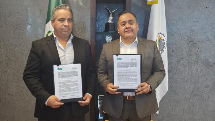 El rector de la UTCJ, Carlos Ernesto Ortiz Villegas, y el coordinador general del Parque Central, Rogelio Muñoz Sapien, fueron los encargados de formalizar el convenio, mismo que establece las bases para que estudiantes y docentes de la UTCJ realicen estancias y estadías en las instalaciones del Parque Central.