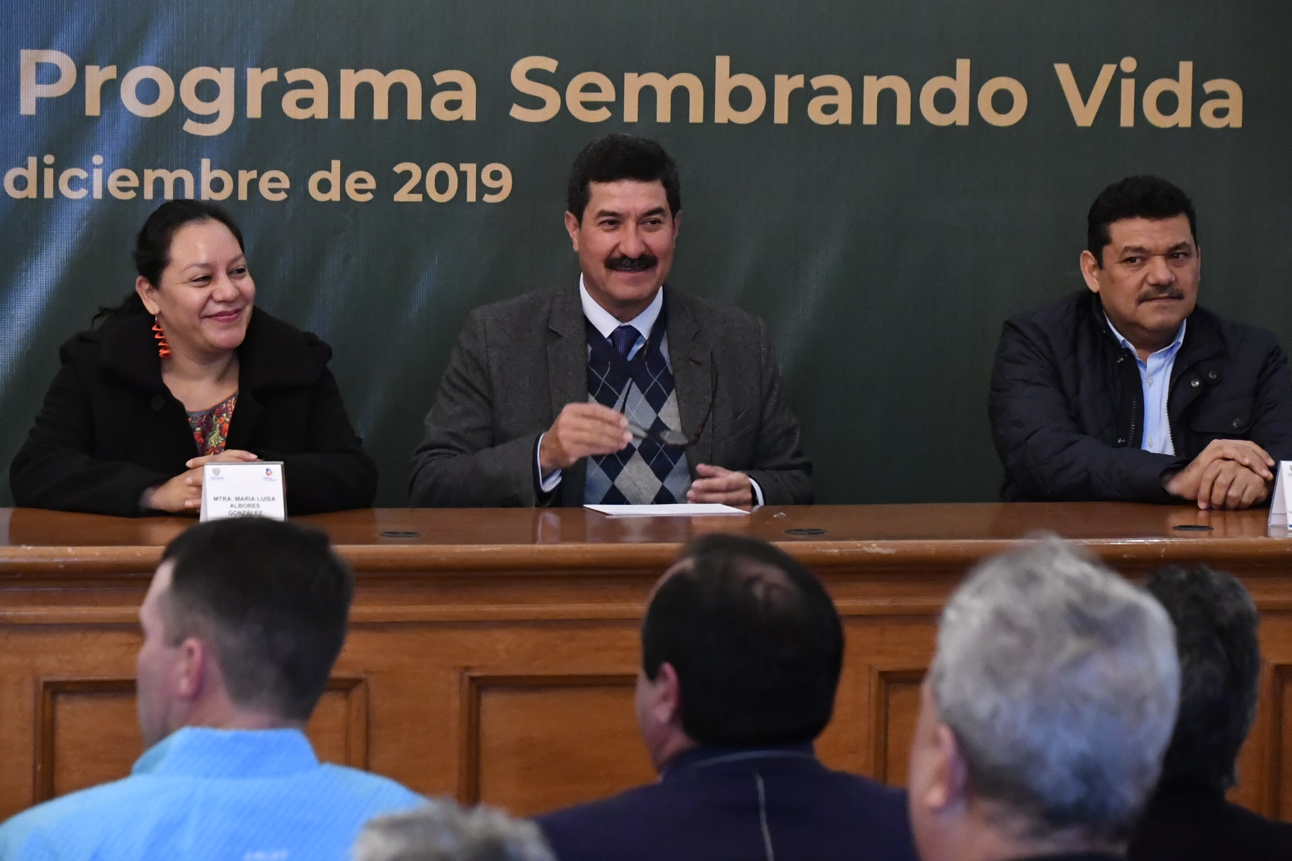 Chihuahua, Chih. – El gobernador Javier Corral Jurado y la secretaria federal del Bienestar, María Luisa Albores González, encabezaron la presentación del Programa “Sembrando Vida”, que se implementará en Chihuahua para la reforestación de 50 mil hectáreas de los municipios de Guadalupe y Calvo, Bocoyna y Guachochi, en apoyo a 20 mil habitantes que se convertirán en “sembradores” en esas regiones y recibirán un sueldo de 5 mil pesos mensuales cada uno.