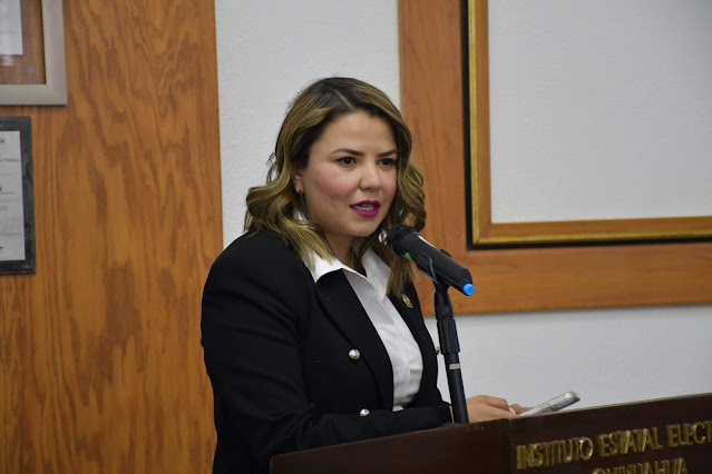 Chihuahua, Chih. – La titular del Poder Legislativo felicitó a la consejera presidenta del Instituto Estatal Electoral, Yanko Durán Prieto, por la organización de la conferencia “Mujeres, Democracia y Violencia Política”, impartida por la consejera Electoral del INE, la Dra. Adriana Favela Herrera.