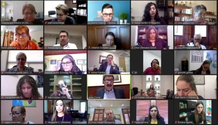 En la reunión vía Zoom en la que participó el gobernador Javier Corral, también estuvieron las y los titulares de la Secretaría General de Gobierno, de Educación y Deporte, Hacienda, Trabajo y Previsión Social, Salud, Desarrollo Social, Fiscalía y DIF.