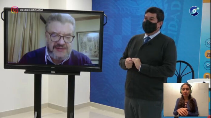 En el programa Chihuahua Adelante, el mandatario se enlazó a través de videollamada hasta Torreón, Coahuila, con Fernando Alanís Ortega, director general de Grupo Peñoles, para agradecer la donación que equivale a más de 4 millones y medio de pesos.