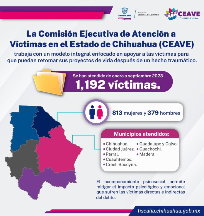 Chihuahua, Chih .- En el periodo de enero a septiembre de 2023, la Comisión Ejecutiva de Atención a Víctimas, registró un total de mil 192 atenciones de acompañamiento psicosocial a víctimas de delitos y/o violaciones de Derechos Humanos.