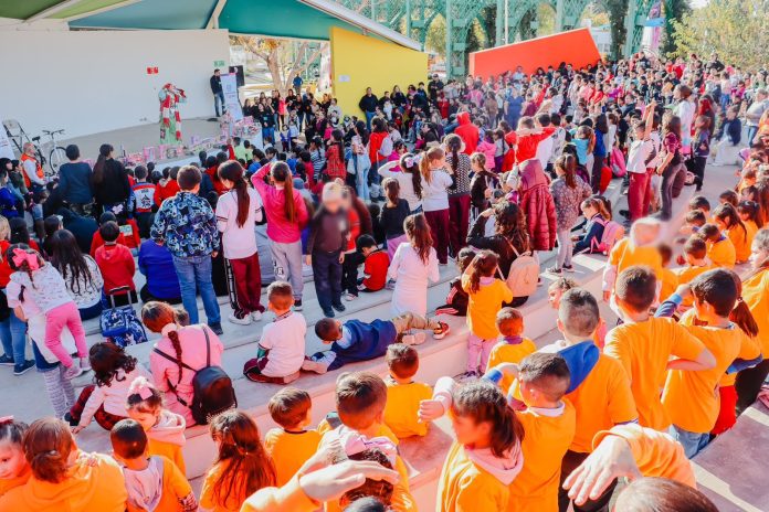 Durante la celebración navideña realizada en el Parque El Colibrí, más de mil niñas y niños disfrutaron de una tarde en los juegos mecánicos, actividades recreativas, refrigerio, regalos como juguetes y bicicletas, paquetes de dulces y el show del payasito Bombín.