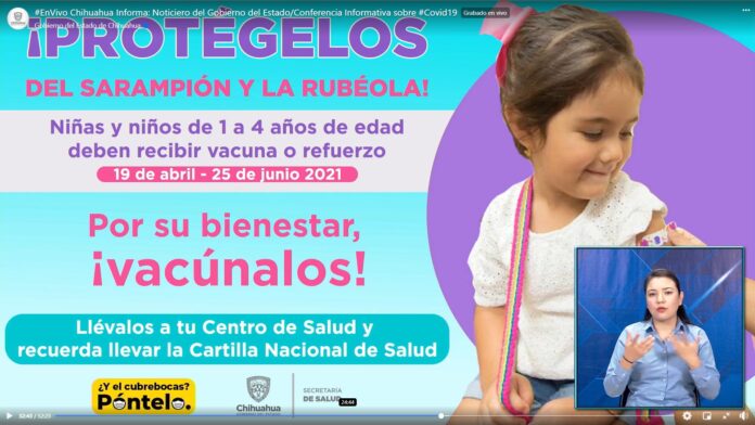 Chihuahua, Chih. – La Secretaría de Salud arrancó hoy en la capital del estado la campaña de vacunación masiva contra sarampión y rubéola, que se desarrolla en tres centros de Salud situados en distintos puntos de la ciudad, así como un módulo Drive-Thru.