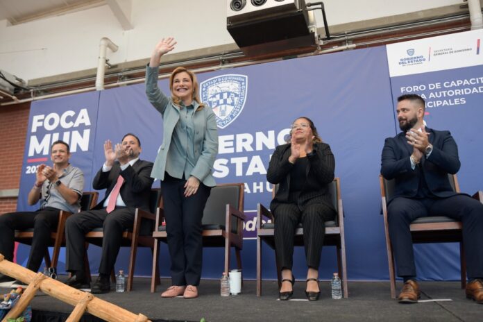 Chihuahua, Chih .- La gobernadora Maru Campos inauguró en las instalaciones de la Universidad del Valle de México, el Foro de Capacitación para Autoridades Municipales (Focamun), por medio del cual se acercan los servicios y programas del Gobierno del Estado a los 67 municipios, en beneficio de los chihuahuenses.