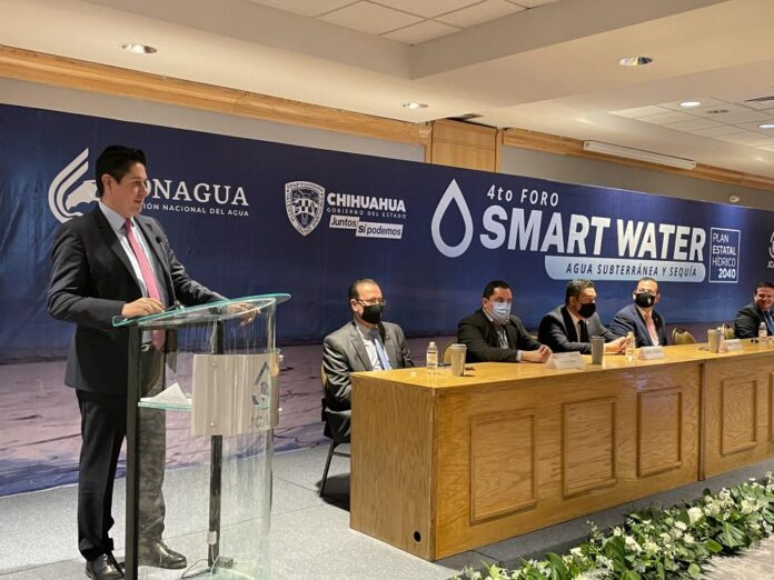 Chihuahua, Chih .- En representación de la gobernadora Maru Campos, el coordinador de Gabinete, Luis Serrato Castell, encabezó la ceremonia inaugural del 4to Foro SMART WATER “agua subterránea y sequía”, en el Centro de Convenciones de Chihuahua.