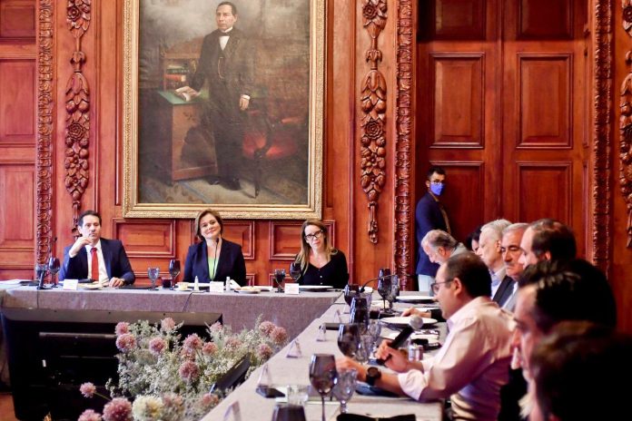 Durante esta primera reunión del Consejo Hacendario, la gobernadora estuvo acompañada del secretario de Hacienda, José de Jesús Granillo Vázquez y la secretaria de Innovación y Desarrollo Económico, María Angélica Granados Trespalacios.