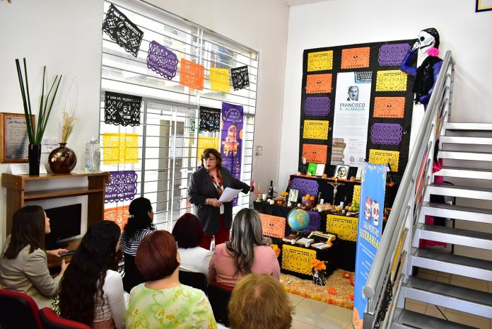 Chihuahua, Chih. (ADN/Staff) – La Biblioteca Legislativa Carlos Montemayor Aceves celebró el Día de Muertos con la inauguración de su tradicional Altar de Muertos, donde se rindió homenaje a Francisco R. Almada, fundador y presidente de la Sociedad Chihuahuense de Estudios Históricos.