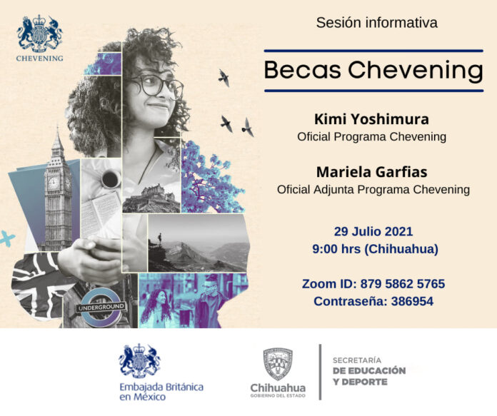 Chihuahua, Chih .- La Secretaría de Educación y Deporte (SEyD), a través del Departamento de Vinculación Sectorial, y la paraestatal invita a estudiantes y egresados de universidades tanto públicas como privadas a la sesión informativa sobre el Programa de Becas Chevening, que ofrece la oportunidad de estudiar una maestría de un año en el Reino Unido.