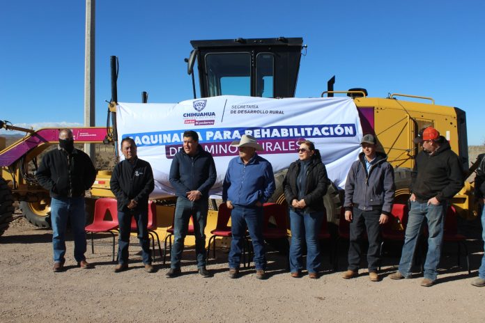 Chihuahua, Chih .- La Secretaría de Desarrollo Rural (SDR) inició los trabajos de mejoramiento de caminos rurales en el municipio de Janos, donde se trabaja de la mano con autoridades locales y productores agrícolas de la región, para renovar las condiciones de estas vías de comunicación.