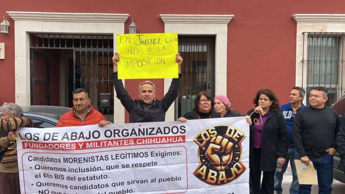 Chihuahua, Chih (ADN/Arturo Hernández) – Miembros de la organización “Los de abajo organizados”, volvieron a manifestarse en las afueras de la dirigencia estatal de Morena en busca de una entrevista con la dirigente estatal, Brighite Granados.