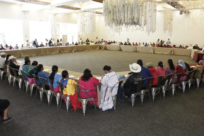 En el evento participaron 66 autoridades indígenas y federales, encabezados por la titular de la Secretaría de Medio Ambiente y Recursos Naturales (Semarnat), María Luisa Albores González.