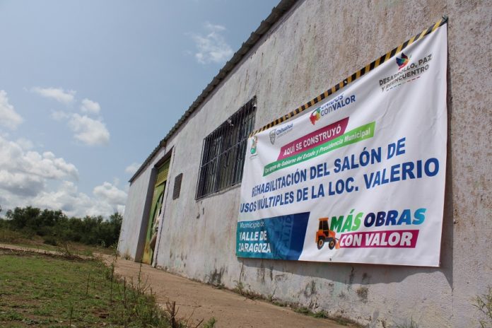 Las obras consisten en la rehabilitación del salón de usos múltiples en la comunidad de Valerio, donde fueron asignados 788 mil 660 pesos, entre Estado y Municipio.