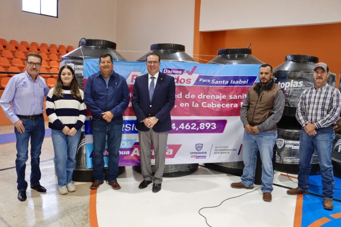 Chihuahua, Chih .- Con una inversión conjunta de más de 6 millones de pesos entre la Junta Central de Agua y Saneamiento (JCAS) y los ayuntamientos de Santa Isabel y Belisario Domínguez, se realizó la entrega de tinacos como parte del programa “Agua Para Todos” y se inauguraron las obras de rehabilitación de redes de alcantarillado en ambos municipios.