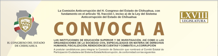 El Congreso de Chihuahua convoca a la sociedad a participar en la selección del Comité Estatal de Participación Ciudadana para fortalecer la lucha contra la corrupción.