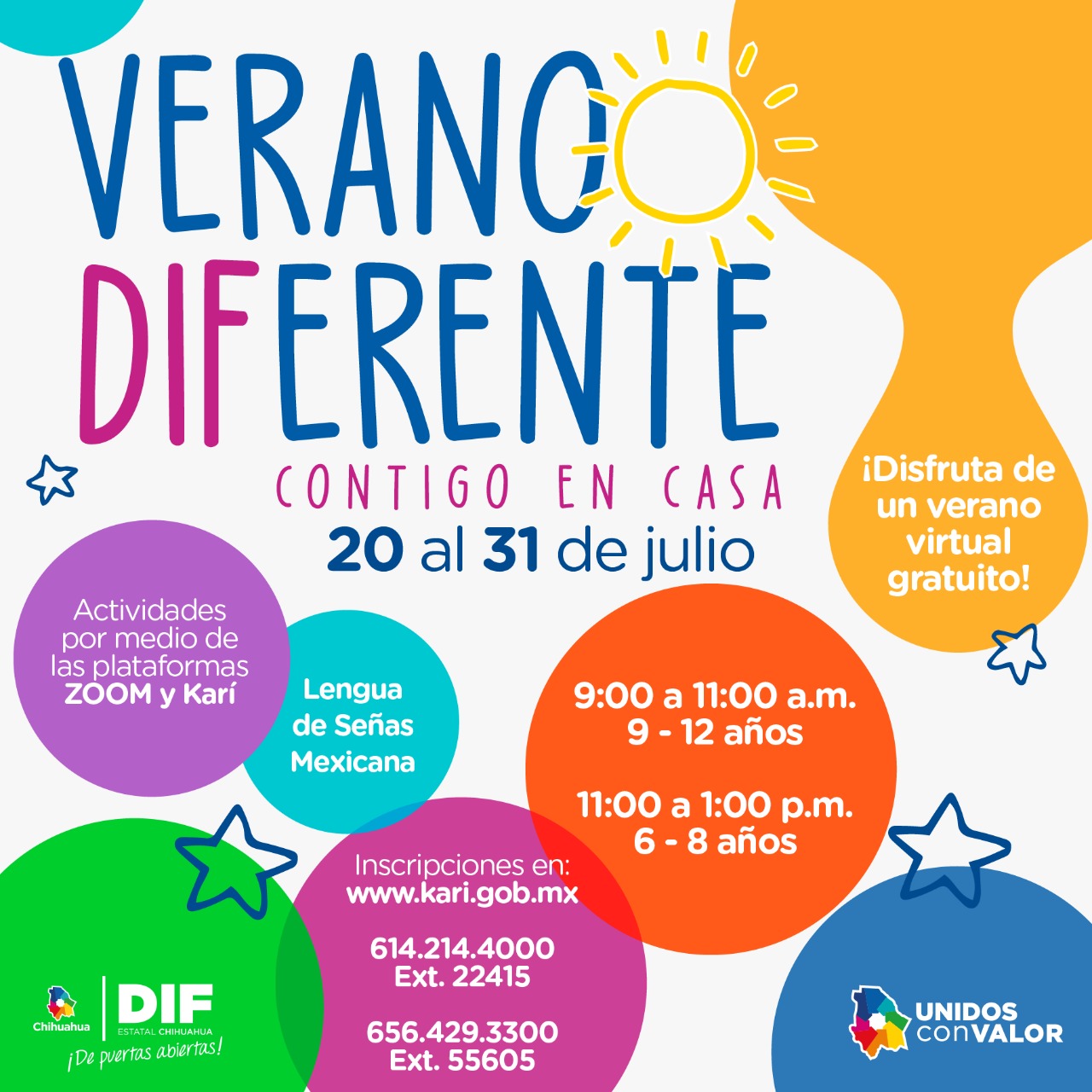 Chihuahua, Chih. – El DIF Estatal a través del Centro Estatal de Fortalecimiento Familiar en vinculación con la Dirección de Esparcimiento y el Instituto Chihuahuense de Lenguaje de Señas Mexicana invitan a las niñas y niños de 6 a 12 años a participar en la Veraneada Virtual “Un Verano Diferente”.