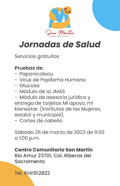 La cita es el sábado 26 de marzo del presente, de 9:00 a 1:00 p.m. en el Centro Comunitario San Martín que se ubica en la calle Rio Amur 23701 de la Colonia Riberas del Sacramento.