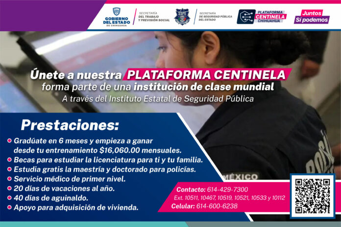 Chihuahua, Chih. (ADN/Staff) – La convocatoria para la Brigada de Reclutamiento de policías de proximidad, y de seguridad y custodia penitenciaria en Ciudad Juárez ha sido lanzada por la Secretaría del Trabajo y Previsión Social (STPS), a través del Servicio Estatal de Empleo (SEE).