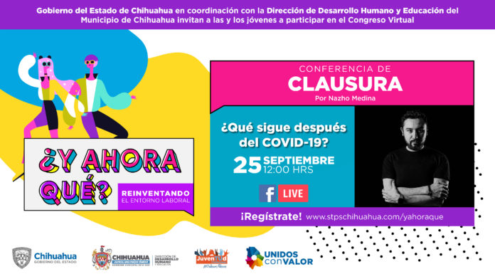Chihuahua, Chih. – Gobierno del Estado, a través de la Secretaría del Trabajo y Previsión Social (STPS) y en coordinación con la Dirección de Desarrollo Humano y Educación del Municipio de Chihuahua, invita a la juventud chihuahuense, a la conferencia “¿Qué sigue después del COVID-19?.