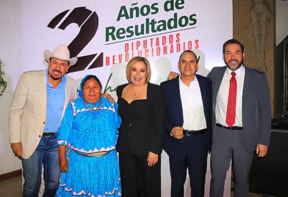 Legisladores del PRI presentan Segundo Informe de Actividades Legislativas en Ojinaga. Diputada Salazar destaca trabajo de fracción y compromiso de representar a la región. Diputado Piñón y Chávez Velázquez destacan trabajo legislativo para el bienestar de Chihuahua.