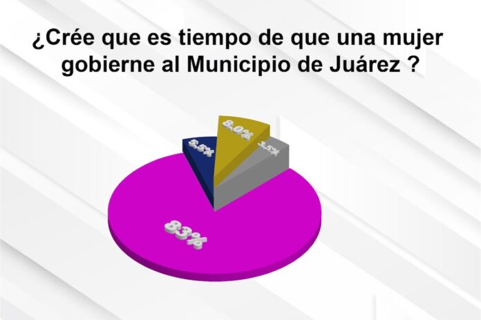 En otro apartado, se reveló que los votantes en un 83 por ciento afirmaron estar de acuerdo que ya es tiempo de que el municipio de Juárez sea gobernado por una mujer.