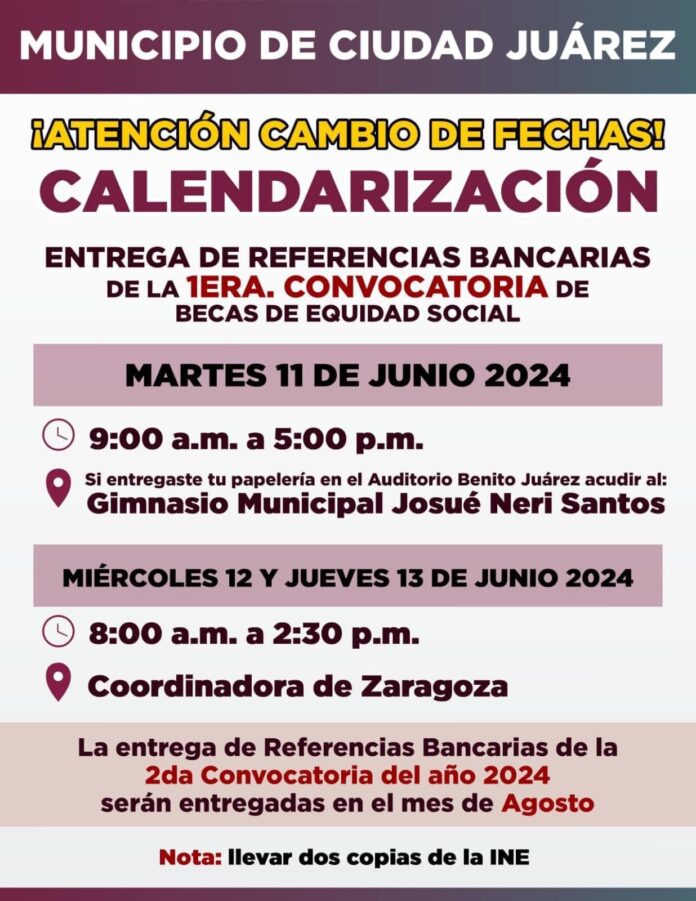 El próximo 11 de junio dará inicio la entrega de referencias bancarias de la primera convocatoria del año 2024, informó la Dirección de Educación Municipal.