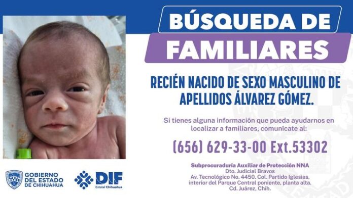 La Subprocuraduría de Protección de Niñas, Niños y Adolescentes del Distrito Judicial Bravos pidió el apoyo a través de las redes sociales pidió para localizar a familiares del bebé.