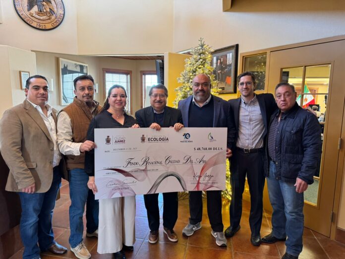 En el marco de la reunión, también se realizó la entrega simbólica de un cheque por 48 mil 768 dólares al Fondo Binacional de Calidad del Aire. Dicho recurso fue reunido gracias a la aportación voluntaria de 5 pesos por cada engomado ecológico emitido por los verificentros de Ciudad Juárez, a través de la Asociación de Verificentros. Los fondos se destinarán al mantenimiento y operación de la red de monitoreo ambiental de la región.