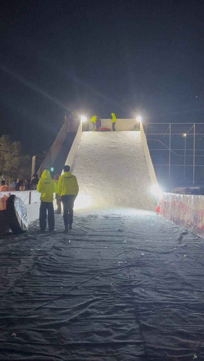 Ciudad Juárez, Chih. (ADN/Staff) – Con el inicio de las celebraciones decembrinas, el Parque Central de Ciudad Juárez abrió al público su tradicional tobogán de hielo, una atracción de 7 metros de altura y 30 metros de largo que promete diversión para niñas, niños y familias durante toda la temporada navideña. El acceso será gratuito los siete días de la semana.