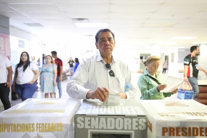 El Presidente Municipal en funciones, Martín Chaparro Payán, acudió al Parque Central para ejercer su derecho al voto en la casilla especial 1746, instalada en el lugar para las personas foráneas.