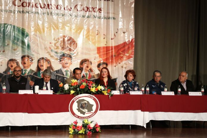 Ciudad Juárez, Chih. (ADN/Staff) – El Centro Cultural Ernesto Ochoa Guillemard fue sede del Concurso de Coros para la Interpretación del Himno Nacional Mexicano, en el que participaron 232 estudiantes de secundarias federales de la localidad.
