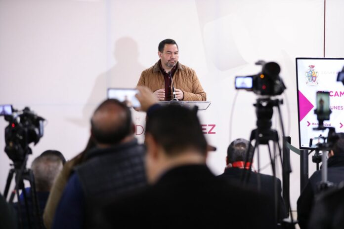 Ciudad Juárez, Chih .- Durante la conferencia de prensa en la Unidad Administrativa “Lic. Benito Juárez”, el Presidente Municipal destacó que la asamblea fue un gran evento, pues lo que se disponía ser un anuncio de aranceles y especie de guerra comercial, se convirtió en una fiesta cívica de apoyo y respaldo al excelente desempeño de la Presidenta Sheinbaum Pardo.