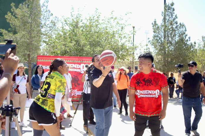 Ciudad Juárez, Chih. (ADN/Staff) – El Presidente Municipal, Cruz Pérez Cuéllar, mostró su apoyo y entusiasmo al asistir a la inauguración de la segunda edición del “Torneo de Básquetbol de Pueblos Indígenas, Uniendo Comunidades a través del Deporte”. El evento se llevó a cabo en la Unidad Deportiva Siglo XXI el pasado sábado, y contó con la participación de 20 equipos varoniles y 13 equipos femeniles, representantes de las diferentes etnias que residen en la ciudad.