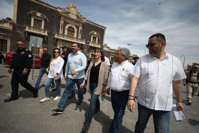 Ciudad Juárez, Chih. (ADN/David Gamboa) – El Presidente Municipal de Ciudad Juárez, Cruz Pérez Cuéllar, lideró un recorrido por el centro de la ciudad junto a autoridades municipales y federales para evaluar la seguridad en la zona. Esta iniciativa fue solicitada por la Mesa de Seguridad y de Justicia de la ciudad.