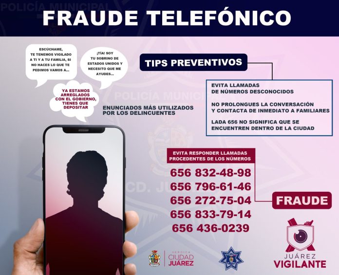 Por lo anterior, la Secretaría de Seguridad Pública Municipal pide seguir tomando precauciones para impedir ser víctimas de fraude y en caso de recibir algún tipo de amenaza a través de estas llamadas, se recomienda colgar de inmediato y denunciar el hecho al número de emergencia 911.