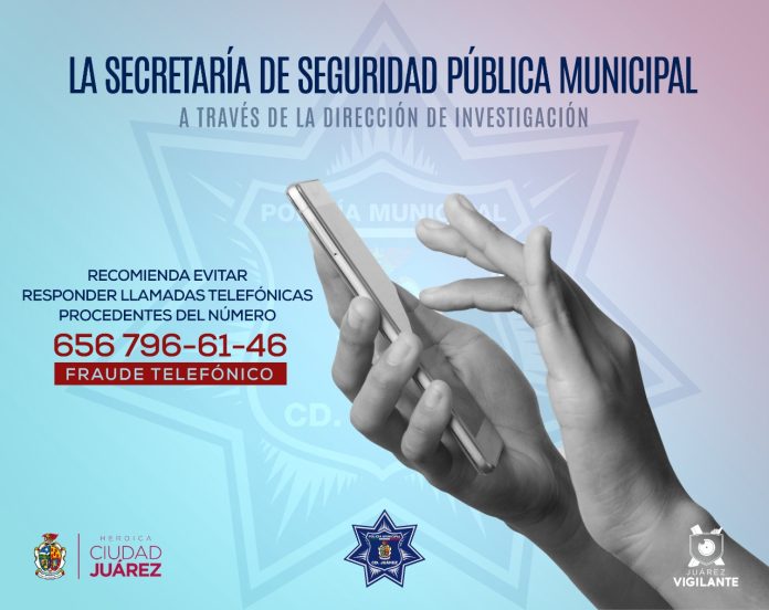 Por lo anterior, la Secretaría de Seguridad Pública Municipal pide a la ciudadanía a tomar precauciones y evitar responder las llamadas del número telefónico 656-796-6146 para impedir ser víctimas de fraude.