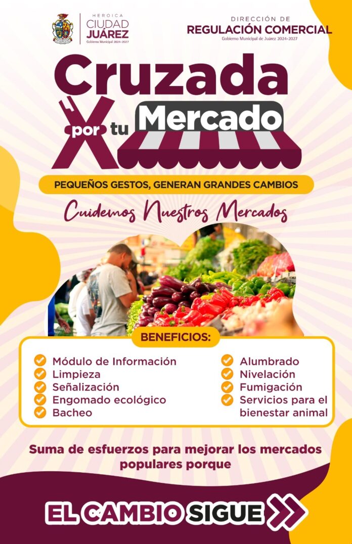 Ciudad Juárez, Chih. (ADN/Staff) – La Dirección de Regulación Comercial anunció el próximo arranque del programa “Cruzada por tu mercado”, iniciativa con la que el Gobierno Municipal busca mejorar las condiciones de operación de los mercados populares en distintas colonias de la ciudad.