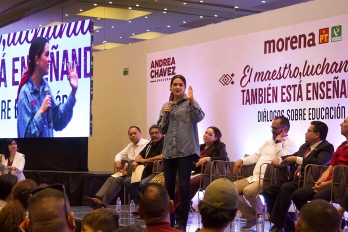En el foro “Diálogos sobre educación”, la candidata al Senado Andrea Chávez Treviño prometió apoyo decidido al magisterio, destacando la importancia de revisar instituciones como la Usicamm y proponiendo mejoras en el sector educativo.