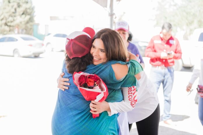 Ciudad Juárez, Chih. (ADN/Staff) – Rubí Enríquez, esposa del candidato de la coalición “Sigamos Haciendo Historia en Chihuahua”, Cruz Pérez Cuéllar, se reunió con los residentes de las colonias Parajes de San Juan y Kilómetro 27, donde destacó las acciones y resultados de la administración de su esposo, enfocándose en los esfuerzos para mejorar las condiciones de vida en estas comunidades. Enríquez utilizó esta oportunidad para escuchar las preocupaciones de los vecinos y reiterar el compromiso de la coalición con el progreso continuo de Ciudad Juárez.